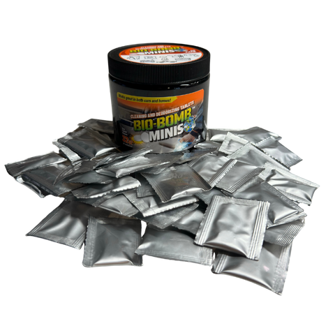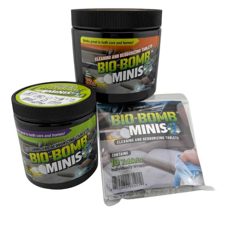 Odors don’t just float in the air — they soak into seats, carpet, foam, vents, and gear. That’s where Bio-Bomb Minis go to work.