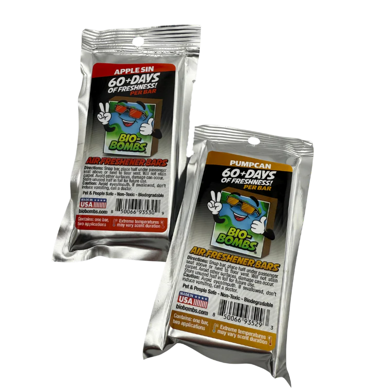 Meet Bio-Bombs Air Freshener Bars โ the discreet, long-lasting solution that keeps your car smelling fresh for 60 + days, not just a few days or weeks like the competition.