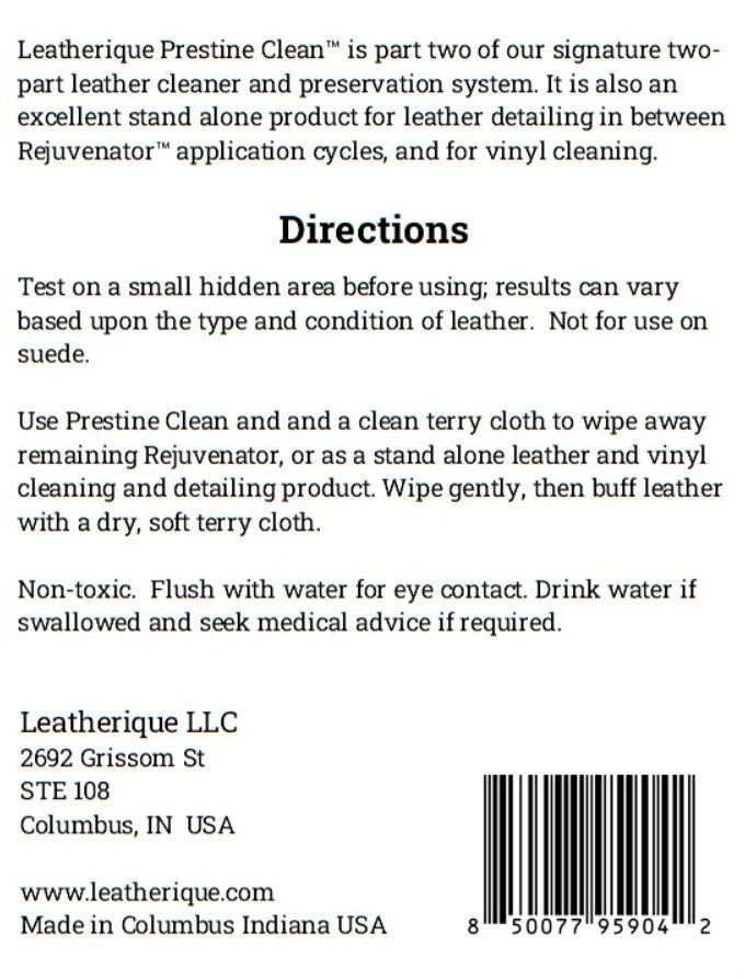 Apply generously by hand and allow time for the Rejuvenator to fully absorb — several hours or overnight yields the best results. Follow with Leatherique Prestine Clean to remove residues and reveal supple, nourished leather ready to last for years to come.