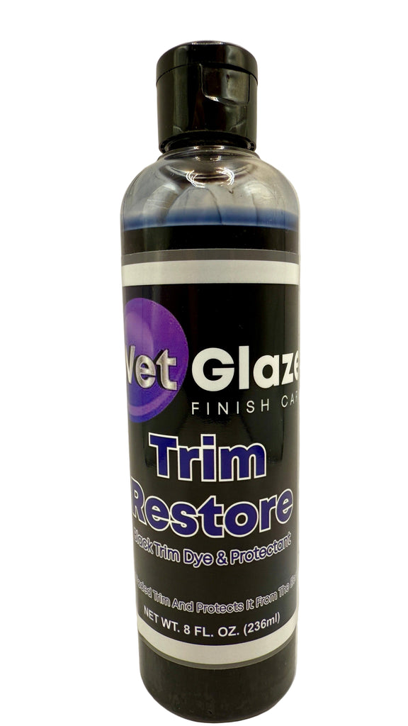 Bring faded trim back to life with Wet Glaze Trim Restore — a premium dye + protectant designed to restore rich, factory-black color and shield against UV, water, and contaminants. Unlike greasy dressings that wash off in days, this advanced formula penetrates deep into plastic, rubber, and vinyl surfaces for a durable, natural-looking finish that resists fading.